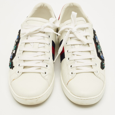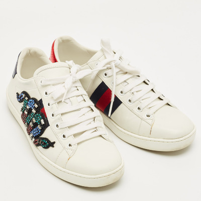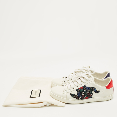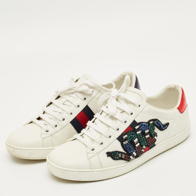 Gucci White Snakeskin Embossed and Leather Ace Low Top Sneakers Size 36 1223169 - 1
