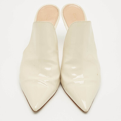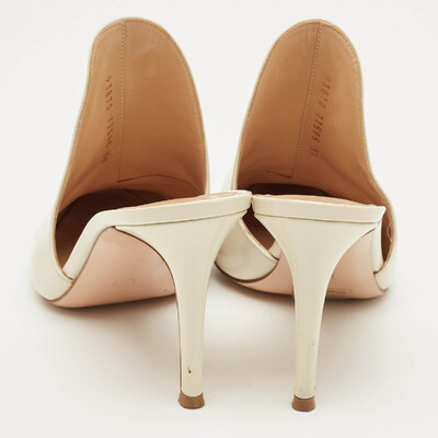 Gianvito Rossi Cream Patent Leather Aramis Pointed Toe Mules Size 38 1222917 (lpn31010153)