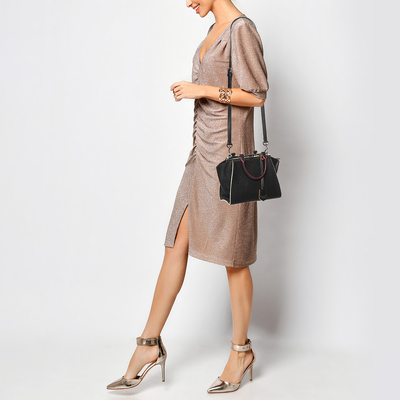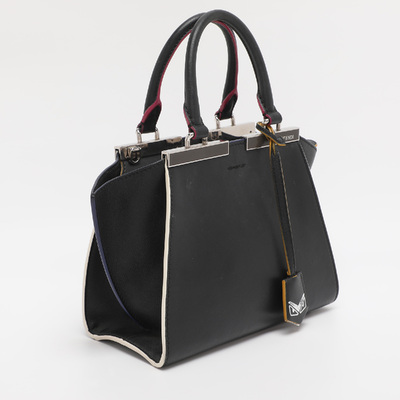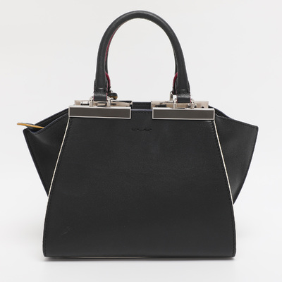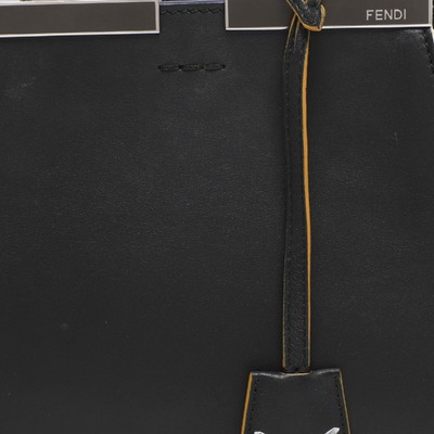 Fendi’s Petite 3Jours tote in black leather distils the architectural lines of the house’s iconic shopper into a more compact scale. Polished metal bars frame its top edge, giving structure without weight. Perfect from office to evening when you want discreet sophistication.