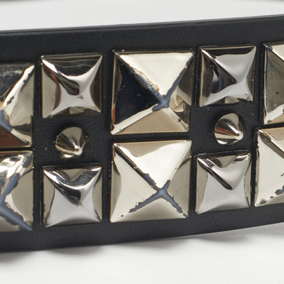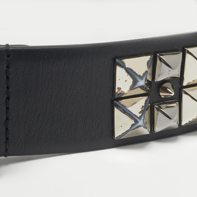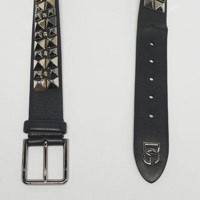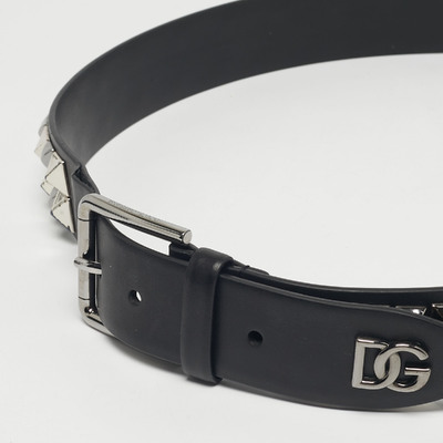 Bold black leather meets gleaming studs and a statement DG buckle for instant attitude. Designed to cinch and elevate both denim and dresses. A true Dolce and Gabbana power accessory.