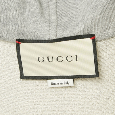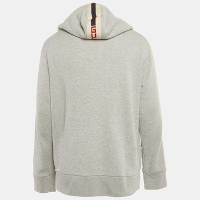 Gucci redefines casual wear with this grey cotton zip up hoodie trimmed in the GG band motif. The soft fabric and clean cut keep it easy while the signature detailing injects instant recognition. Layer it over a crisp tee and dark jeans for off duty luxury.