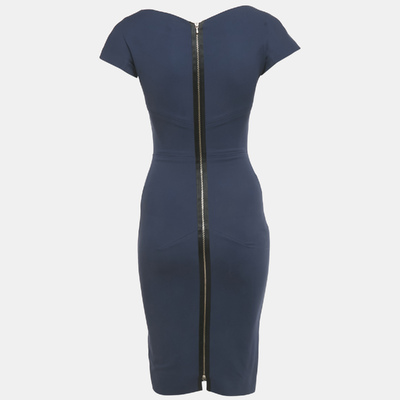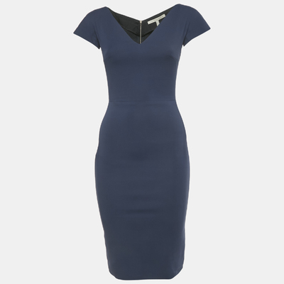 Victoria Beckham Navy Blue Cotton Blend Sheath Short Dress S 1221683 (lpn31010174)