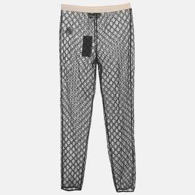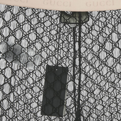 These Gucci leggings combine sheer tulle with delicate GG embroidery for a high fashion edge. Sleek and alluring, they’re perfect for layering under oversized knits or mini dresses. A blend of luxury and daring style.