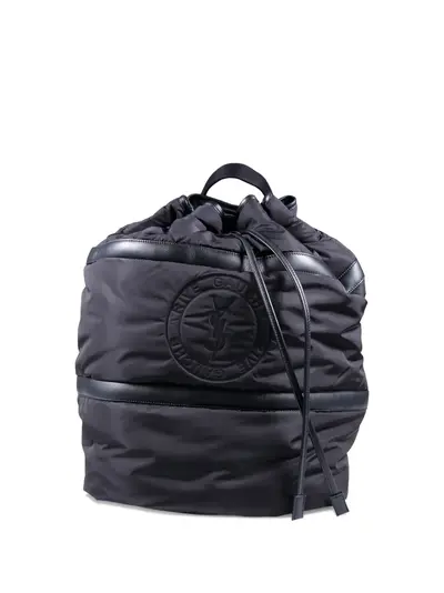 black embossed logo top handle adjustable shoulder strap drawstring fastening detachable pouch