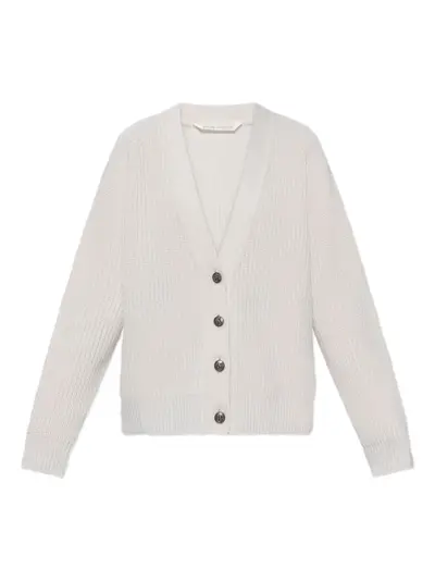 beige button fastening ribbed knit V-neck long sleeves