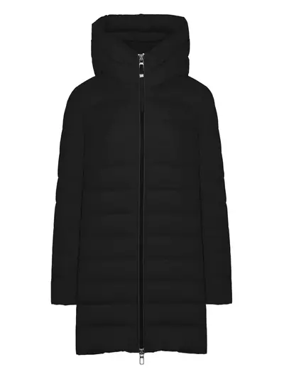black hooded zip fastening long sleeves quilted straight hem
