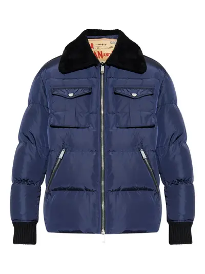dark blue zip fastening multiple pockets ribbed cuffs quilted
