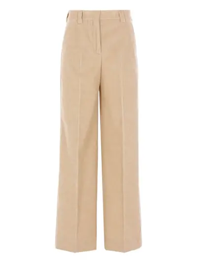 light beige corduroy texture button fastening belt loops rear welt pocket