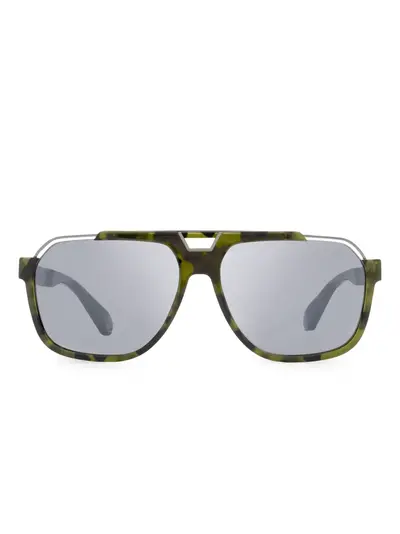 green metal logo plaques navigator shape cutout bridge acetate frame metal temples These glasses come with a protective case