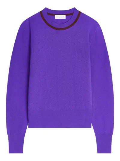 purple round neck ribbed hem ribbed cuffs contrasting trim fine knit