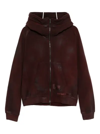 dark red front two-way zip fastening two front welt pockets ribbed cuffs and hem classic hood
