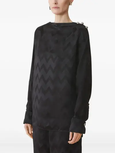 black chevron pattern boat neck long sleeves button details shoulder wide cuffs