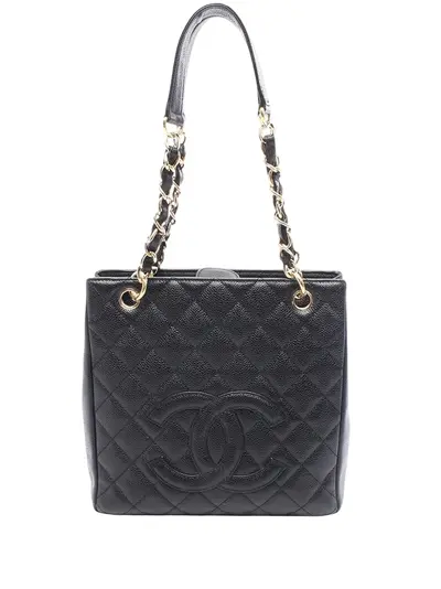 caviar leather body leather woven chain link shoulder straps with leather guard open top with a magnetic snap closure exterior back slip pocket interior zip and slip pockets black Serial Number: 8202984 This item has no inclusions. Condition: EXCELLENT. This previously owned item is in near-perfect condition with no signs of damage or use. Due to the exclusivity of this item and its limited availability, processing and delivery might take longer than usual. Please refer to the photos on this product page for a detailed view of the item, including any damages declared.
