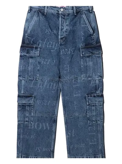 blue all-over print denim cargo pockets
