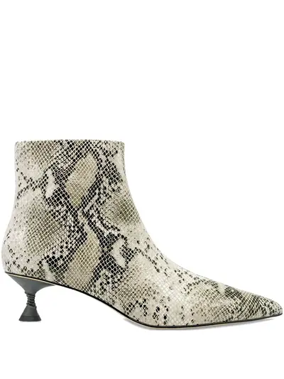 beige snakeskin effect zip fastening pointed toe sculpted heel ankle length