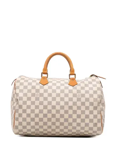 damier canvas body rolled vachetta leather handles top zip closure interior slip pocket white Serial Number: DU1170 This item has no inclusions. Condition: GOOD. This previously owned and used item is in good condition with minimal signs of use. This may include fading of material or plating and scratches. Please refer to the photos on this product page for a detailed view of the item, including any damages declared.