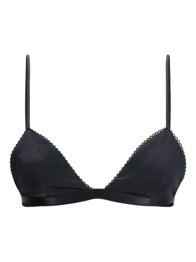 black lace trim adjustable straps hook fastening elasticated underband triangle cup Just a reminder that this piece must be tried on over your own garments.