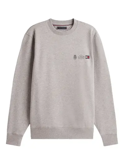 grey logo graphic crew neck long sleeves ribbed hem ribbed cuffs