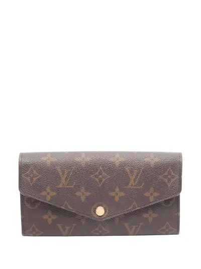 monogram canvas body front flap with button clasp closure exterior back slip pocket interior zip and slip pockets brown This item has no inclusions. Condition: EXCELLENT. This previously owned item is in near-perfect condition with no signs of damage or use. Due to the exclusivity of this item and its limited availability, processing and delivery might take longer than usual. Please refer to the photos on this product page for a detailed view of the item, including any damages declared.