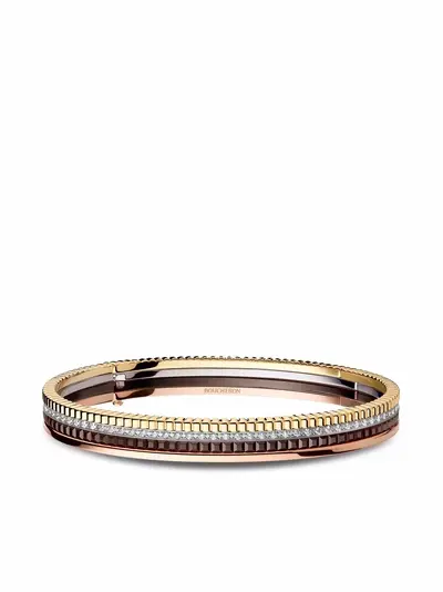 18kt yellow/18kt rose gold/18kt white gold round cut diamonds pavé setting brown PVD clasp fastening polished finish Conscious: 95% of the gold Boucheron uses is recycled, thereby reducing the brand's environmental impact. The remaining 5% is certified Fairmined. Learn more about what makes a product Conscious on our Conscious Criteria page Normal everyday use and external agents may reduce the lustre of gemstones and gold surfaces. To maintain, use specific, non-abrasive products specially meant for cleaning jewellery.