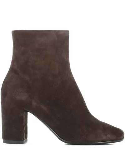 brown suede block heel zip fastening