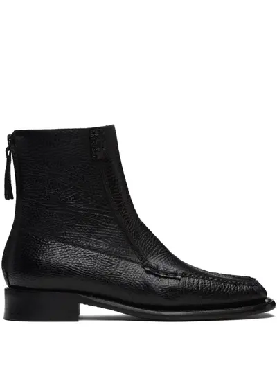 black grainy texture back zip fastening square toe low heel tonal stitching