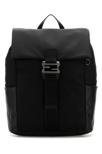 black foldover top with buckle fastening single top handle adjustable shoulder straps side slip pockets main compartment