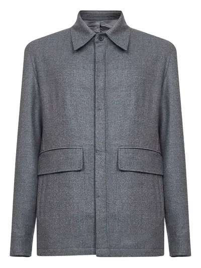 grey covered button placket shirt collar long sleeves buttoned cuffs