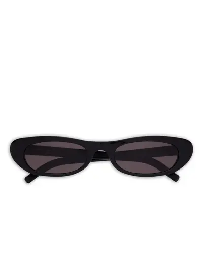 black cat-eye frame engraved temples These glasses come with a protective case.