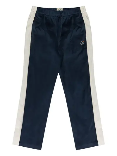 navy blue velvet texture side stripe elasticated waistband logo detail