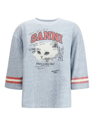 Ganni print striped sleeve T-shirt 32202501 (lpn31011371)