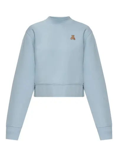light blue rear bear-motif embroidered detail mock neck long sleeves cropped hemline
