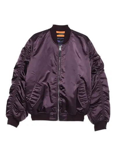 plum purple zip fastening ribbed hem ribbed cuffs gathered sleeves side flap pockets