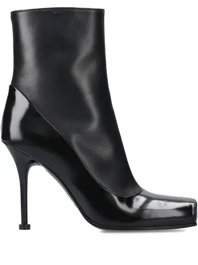 black square toe stiletto heel zip fastening patent finish leather upper