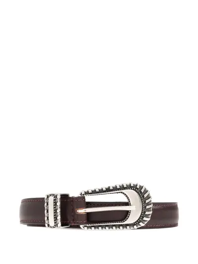 burgundy textured buckle keeper loop pointed tip silver-tone hardware adjustable fit
