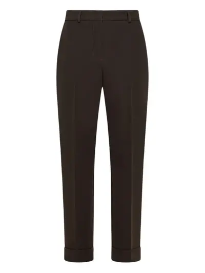 brown cuffed hem belt loops back welt pocket concealed fly fastening