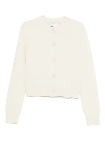 ivory round neck front button fastening long sleeves ribbed cuffs ribbed hem