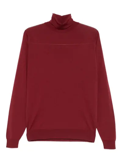 red merino wool roll neck long sleeves ribbed cuffs and hem