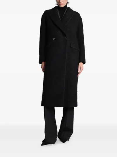 black double-breasted button fastening front flap pockets long sleeves mid-length