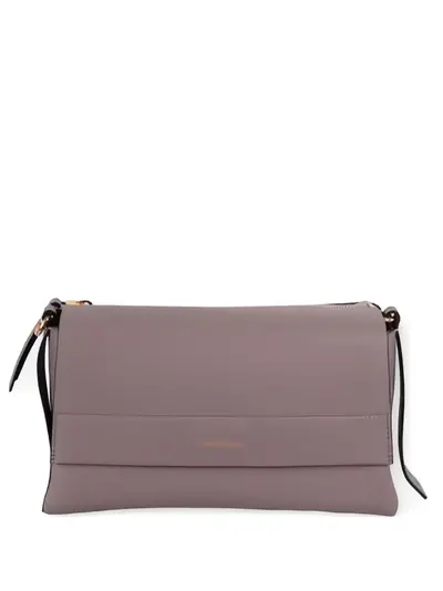mauve top handle zip fastening gold-tone hardware adjustable shoulder straps front panel detail