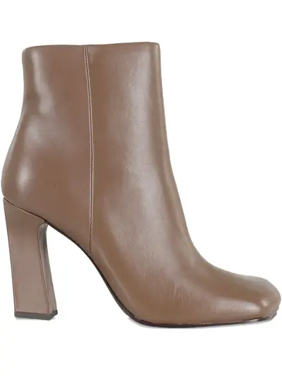 brown block heel square toe zip fastening