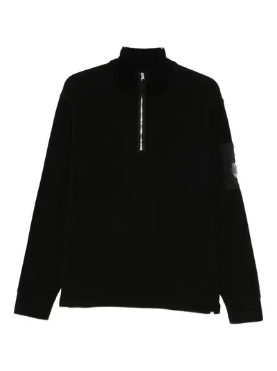 black wool blend half-zip fastening long sleeves patch pocket at the sleeve high neck