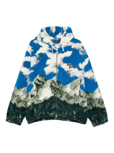 blue mountain graphic print zip fastening drawstring hood long sleeves logo patch
