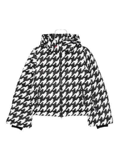 black/white houndstooth pattern classic hood long sleeves front zip fastening side zip-fastening pockets