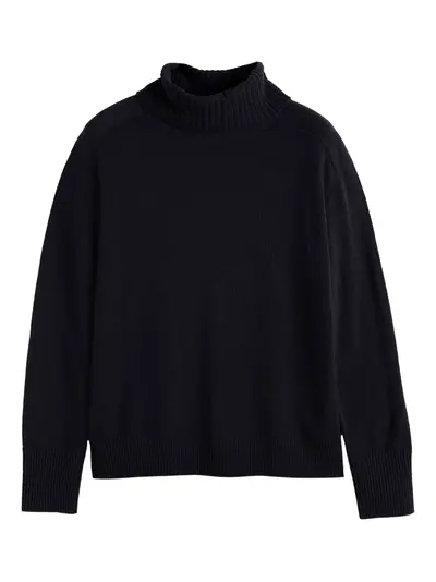 navy blue roll neck raglan sleeves ribbed cuffs ribbed hem wool