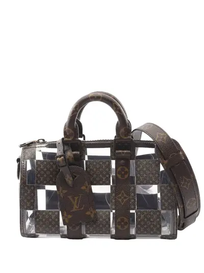 monogram chess and PVC body rolled monogram canvas handles detachable flat monogram canvas shoulder strap top zip closure brown Inclusions: shoulder strap. Condition: GOOD. This previously owned and used item is in good condition with minimal signs of use. This may include fading of material or plating and scratches. Due to the exclusivity of this item and its limited availability, processing and delivery might take longer than usual. Please refer to the photos on this product page for a detailed view of the item, including any damages declared.