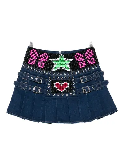 blue bead embellishment star motif heart motif buckle detail pleated design