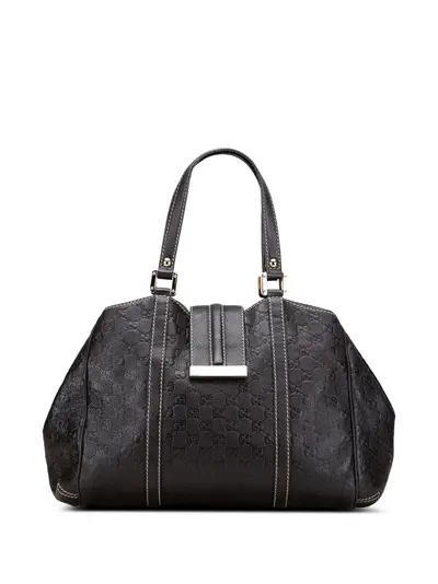 embossed leather body flat leather straps open top with a top strap with magnetic snap closure interior zip and slip pockets brown Serial Number: 233609 213317 This item has no inclusions. Condition: GOOD. This previously owned and used item is in good condition with minimal signs of use. This may include fading of material or plating and scratches. Please refer to the photos on this product page for a detailed view of the item, including any damages declared.