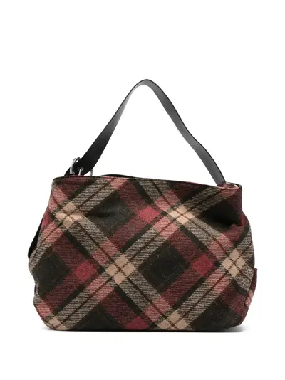brown checked pattern top handle This piece comes complete with a protective dust bag.