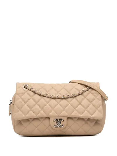quilted caviar leather body leather woven chain shoulder strap with flat leather shoulder guard front flap with double Cs and twist lock closure top zip closure interior zip and slip pockets brown Serial Number: 1794315 This item has no inclusions. Condition: GOOD. This previously owned and used item is in good condition with minimal signs of use. This may include fading of material or plating and scratches. Please refer to the photos on this product page for a detailed view of the item, including any damages declared.